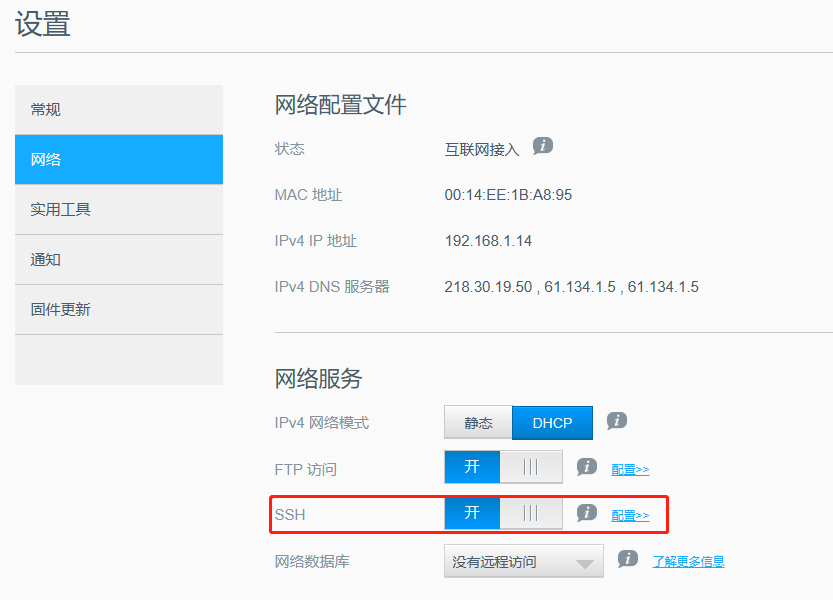 登录WD Mycloud后台在设置中开启ssh登录,用户名为sshd,密码自己设置。